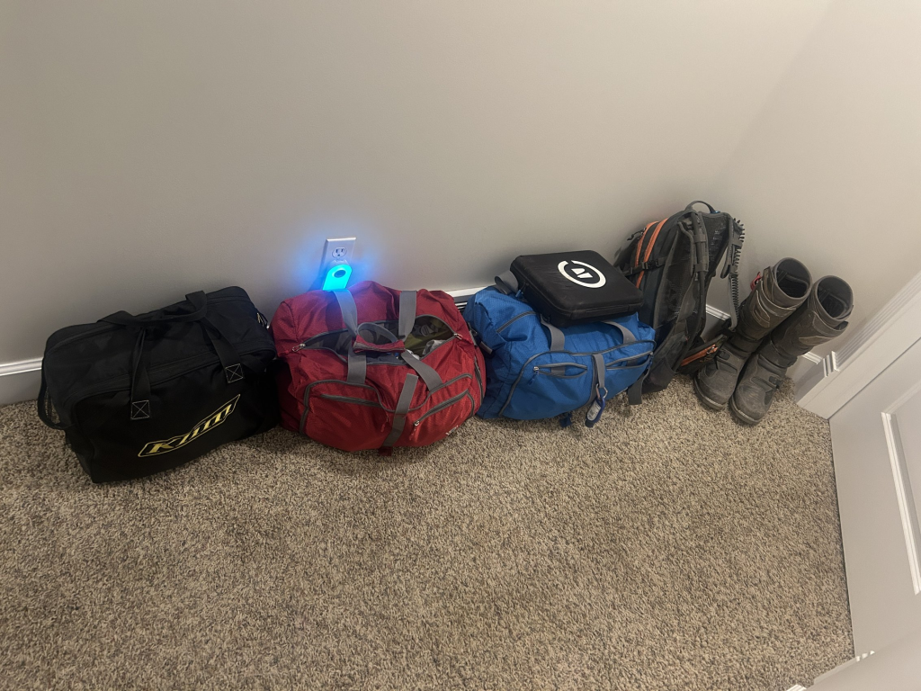 One duffle for the trailer (for evenings and overnight) and one for my riding gear.