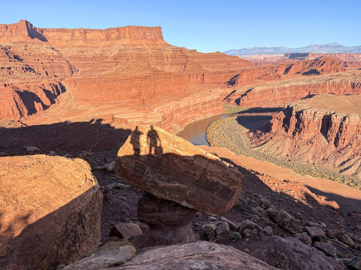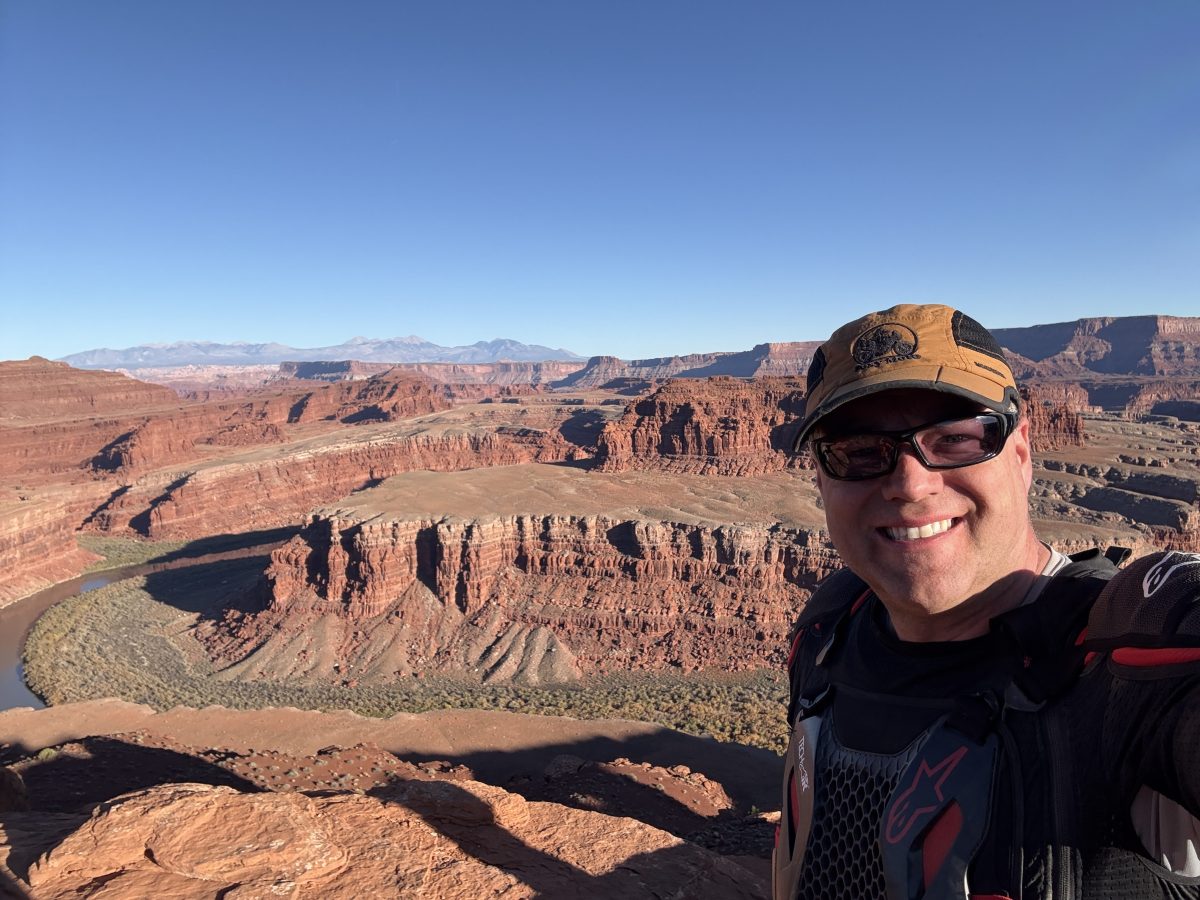 At about 3 hours in, I noticed we were about half way through making good time. So we stopped at several places I road past in past rides. Colorado River overlook (you can ride right up to the cliff), Musselman arch (really close to the road), gooseneck overlook (5 min walk).