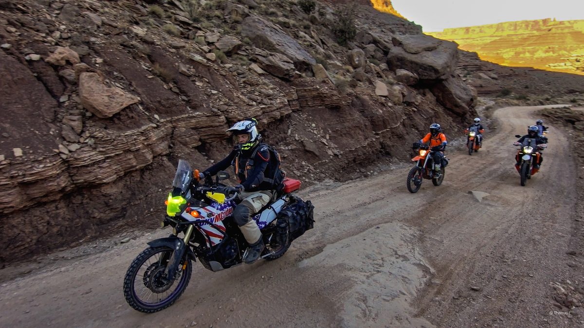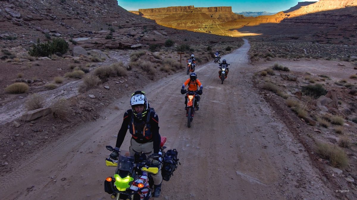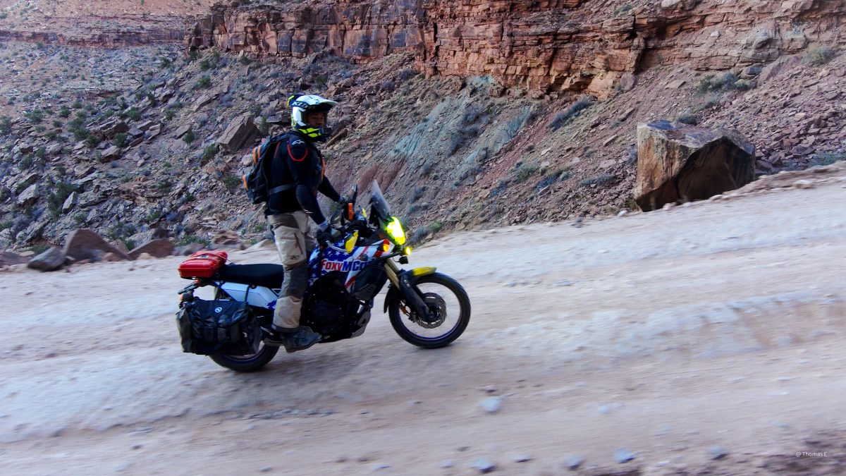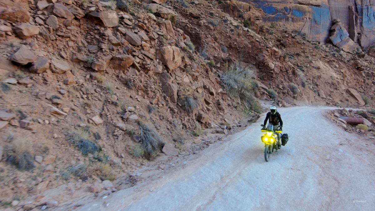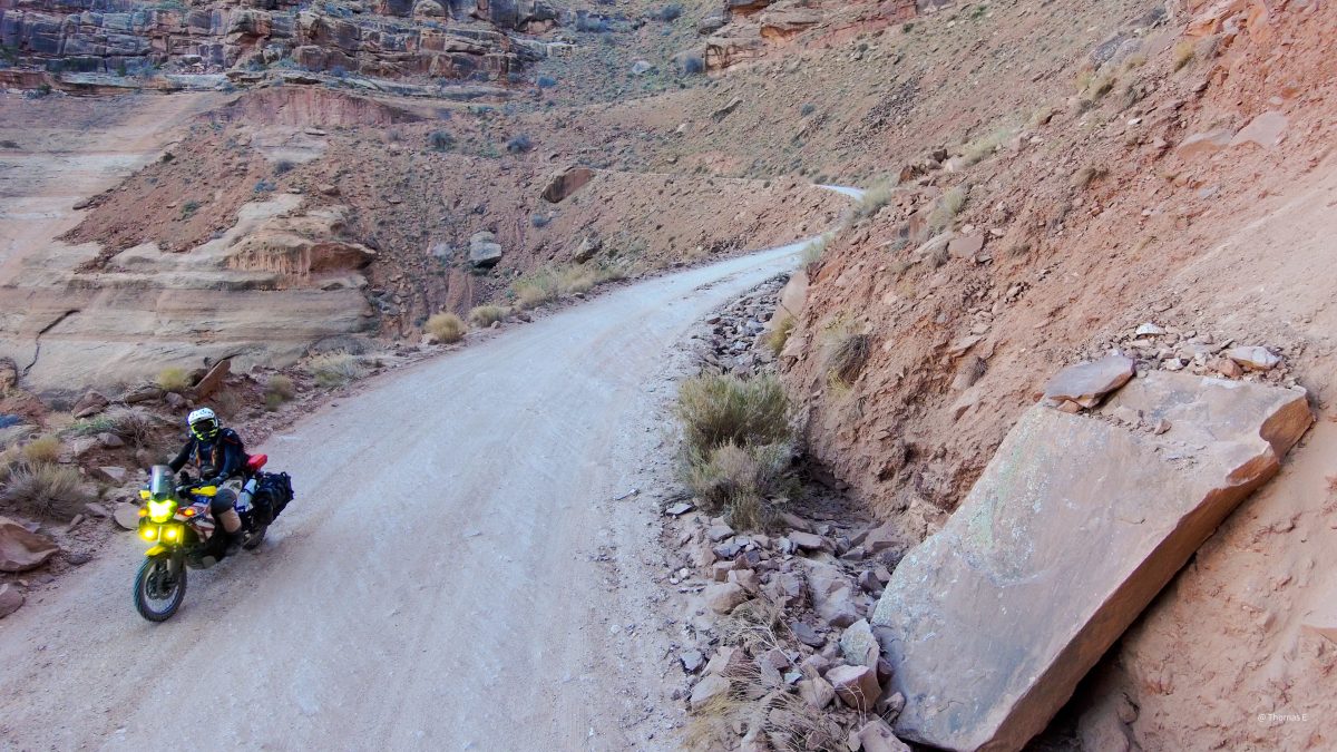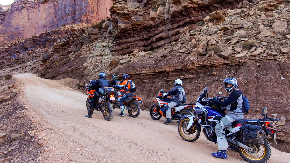 Day1: Sandflats to Onion Creek and back to moab was about 85 miles. All super-hwy dirt roads (50mph+) except a few spots that were fun on the big bikes.